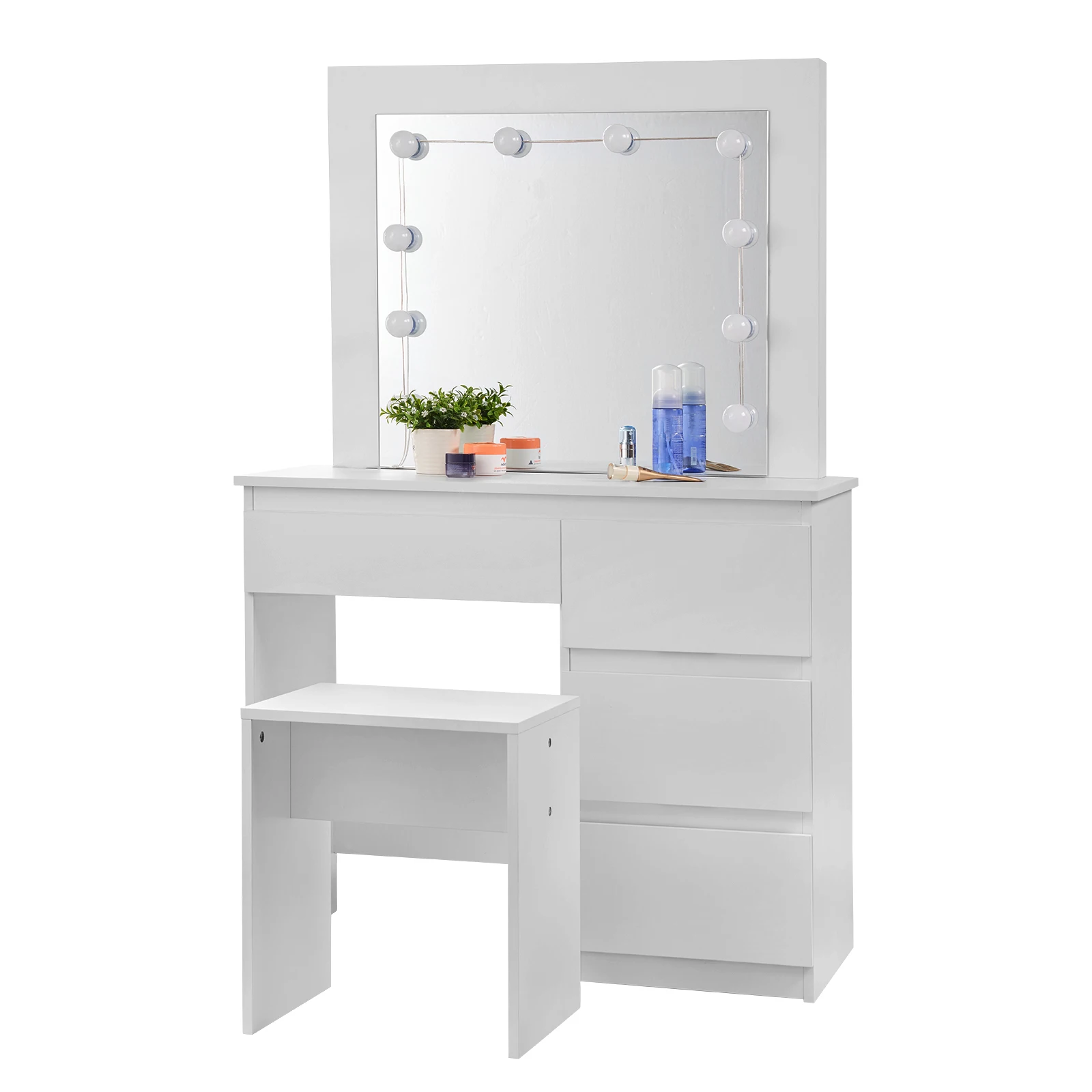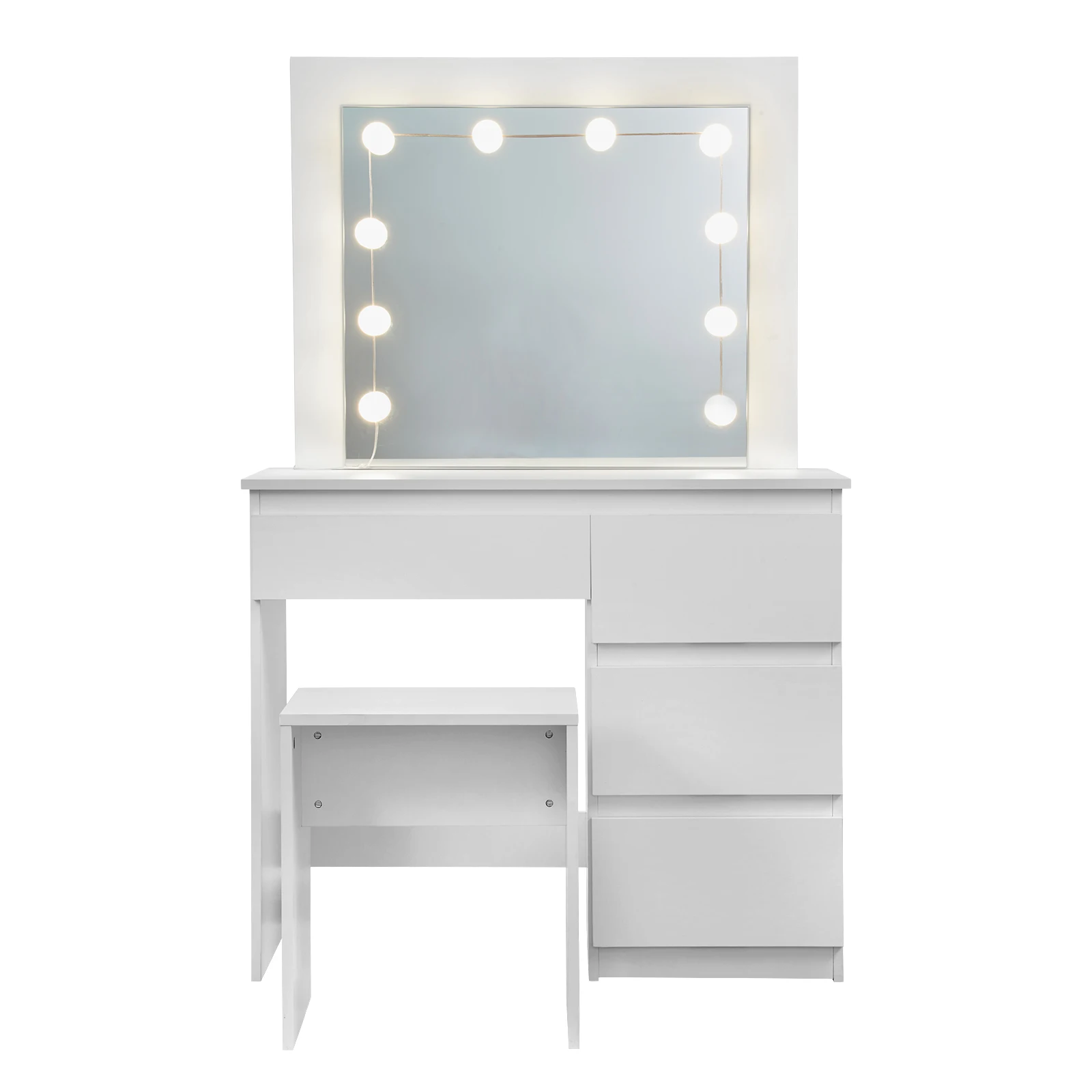 - Includes: Dressing table, stool, mirror, 10 LED lights, assembly instructions