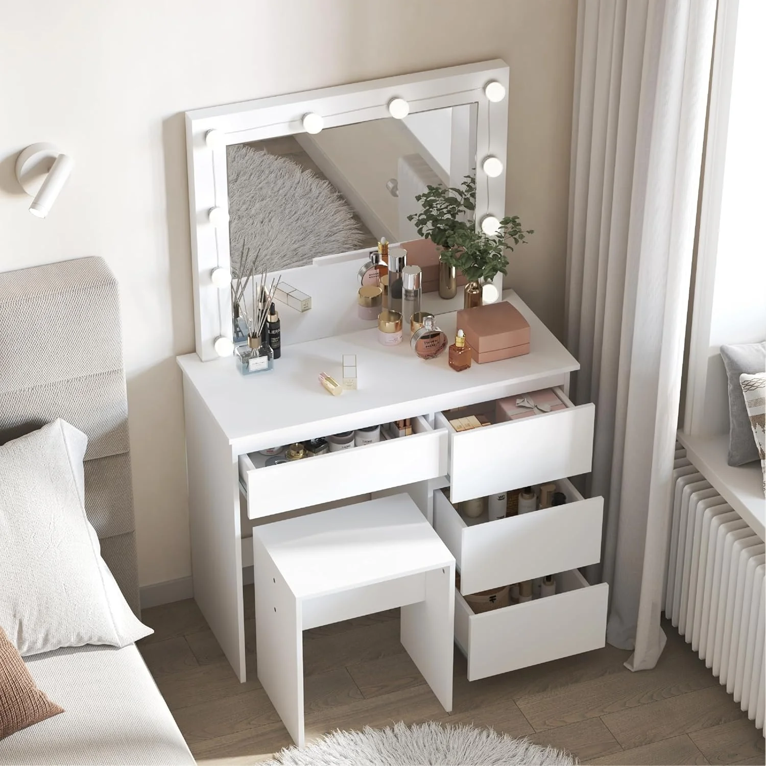 Elevate Your Space with the White Dressing Table with Lighted Mirror and Stool