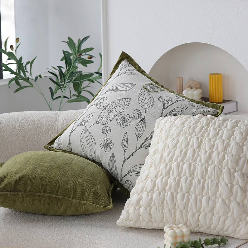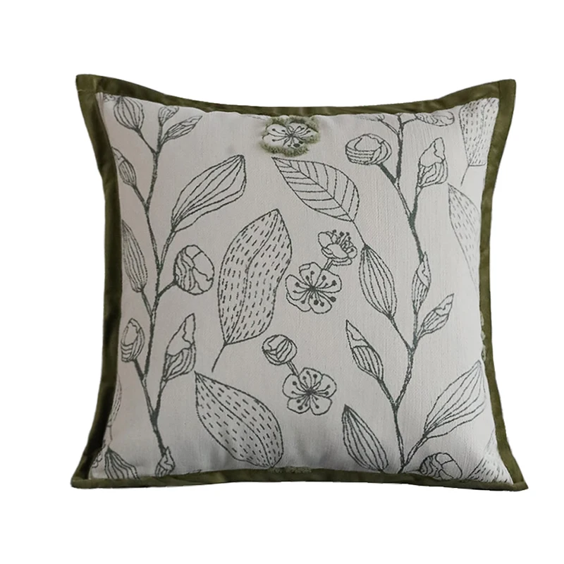Green Leaf Edged Polyester Cushion Cover for Home Decor