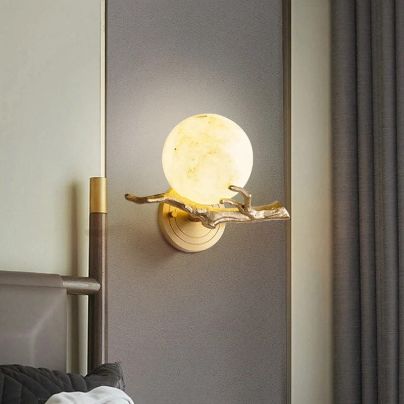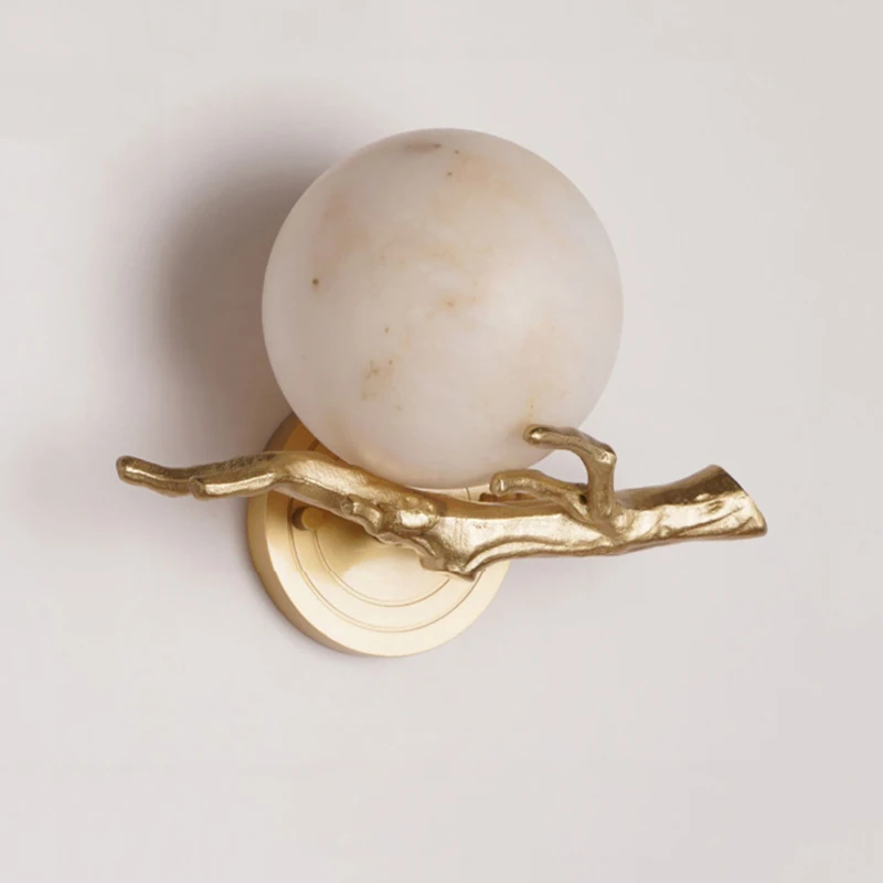 Golden Brass Wall Light with Marble Accent for Bedroom and Foyer