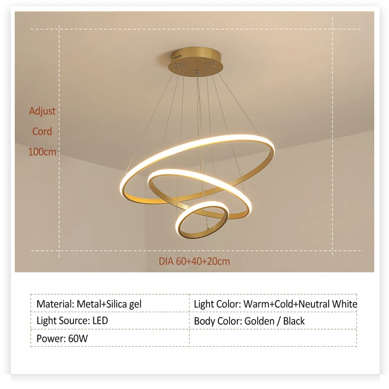 Transform your dining room, café, or any other living space into a modern haven with our stunning LED Pendant Light with 3 Circles. This exquisite light fixture features a contemporary design that not only provides ample illumination but also serves as a striking centerpiece. With its sleek lines and elegant finish, this pendant light is perfect for creating an inviting atmosphere whether in a home or commercial setting.