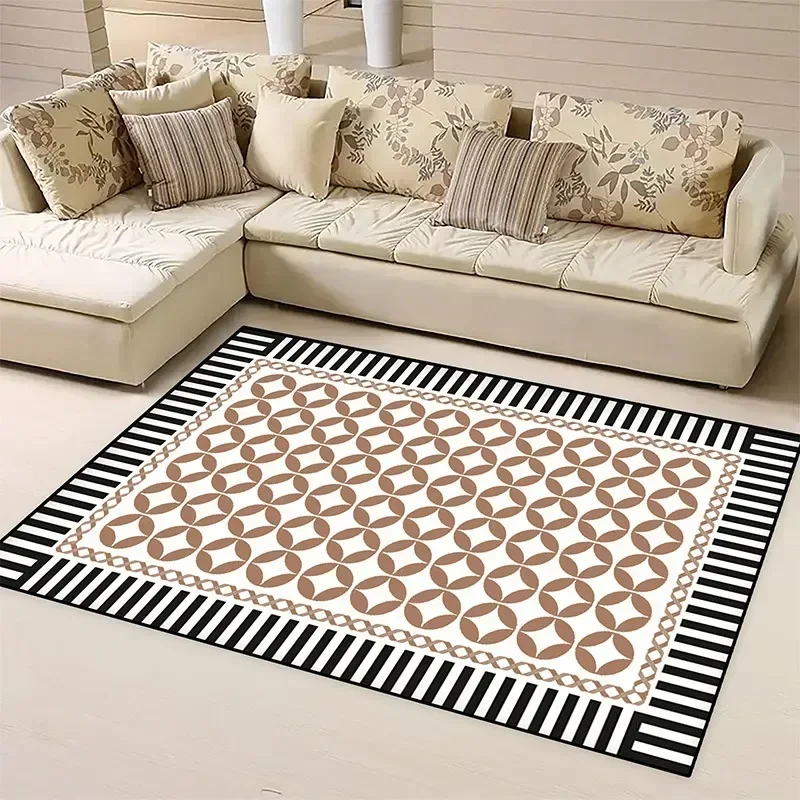 Enhance the aesthetic appeal of your home or office with our Modern Black and White Geometric Area Rug. This stylish and versatile rug is designed to complement various interior styles, adding a touch of elegance and comfort to any room. Made from high-quality materials, it promises durability while offering a plush feel underfoot, making it an ideal choice for living rooms, bedrooms, hotels, and even outdoor spaces.