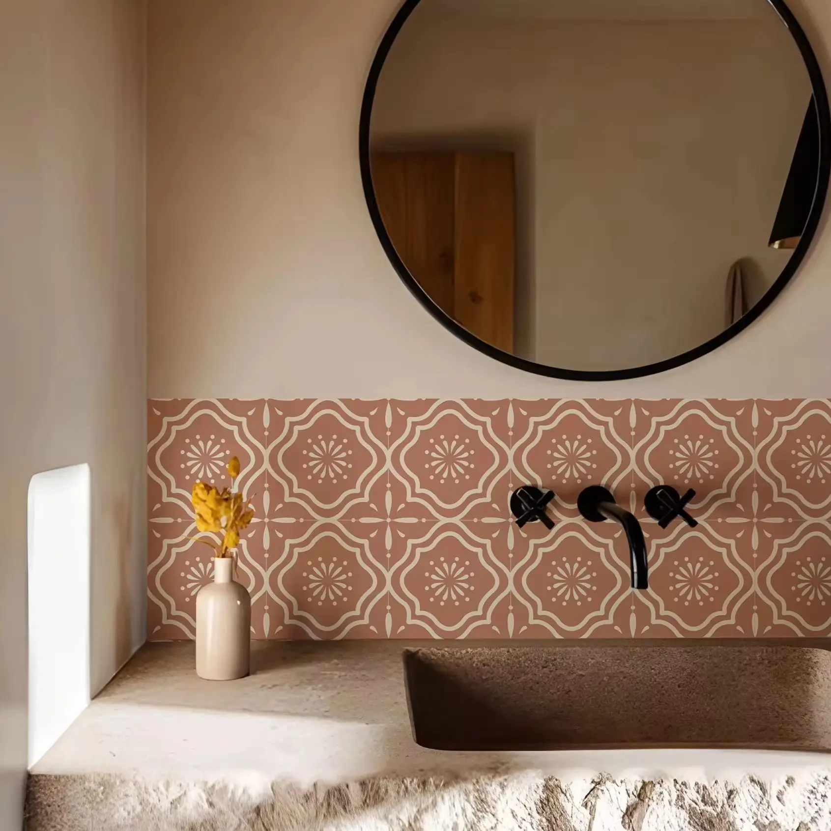 Transform Your Space with Terracotta Bohemian Tile Stickers