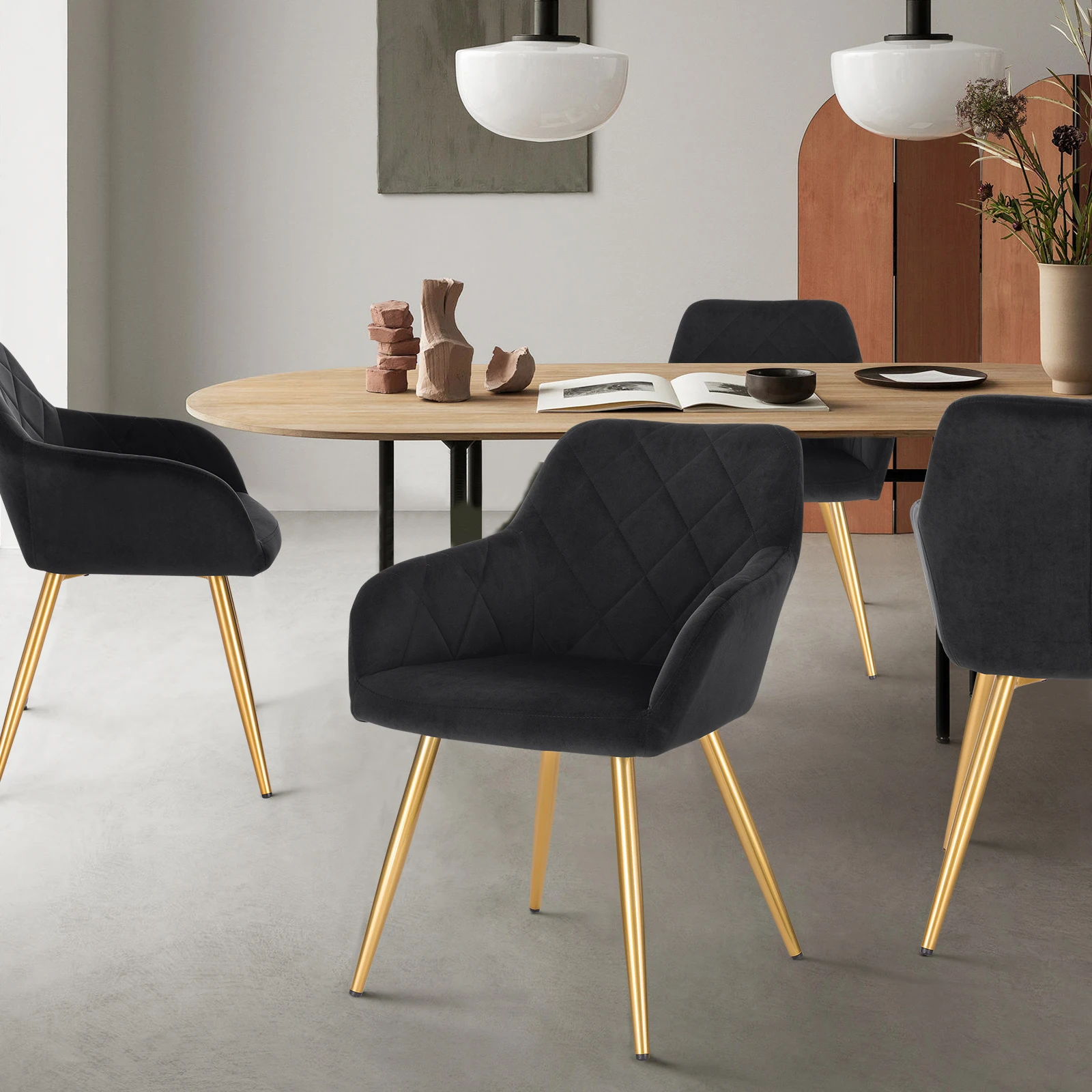 - Ultimate Comfort: The plush velvet upholstery and ergonomic design ensure a cozy seating experience, allowing you to enjoy long meals without discomfort.