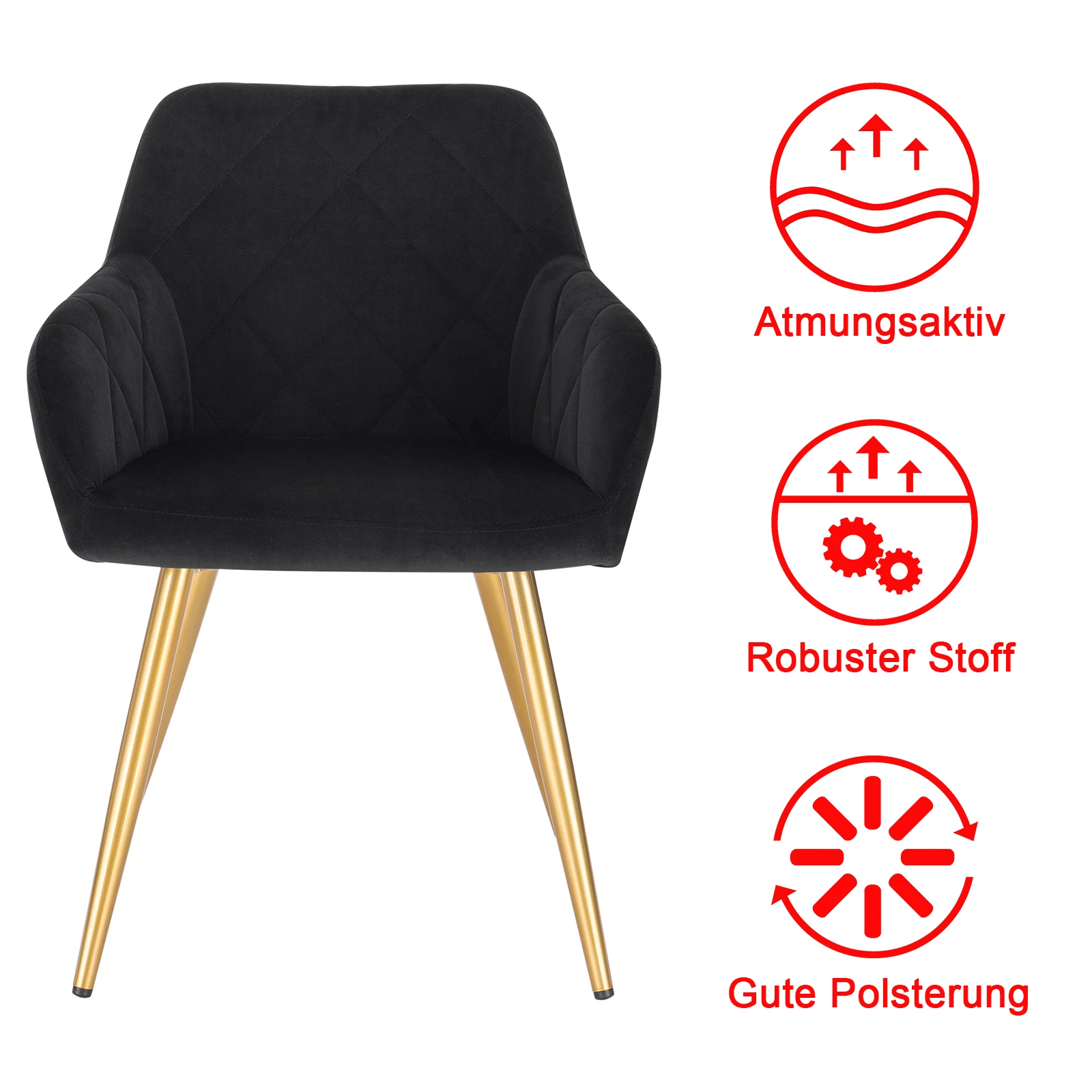 Velvet Dining Room Chair with Armrests and Metal Frame